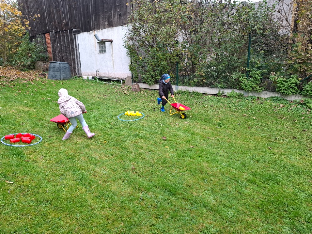 Venku byl pro děti byl připraven KOLEČKOVÝ MARATON, kde se musely dostat co nejrychleji na druhý konec zahrady.