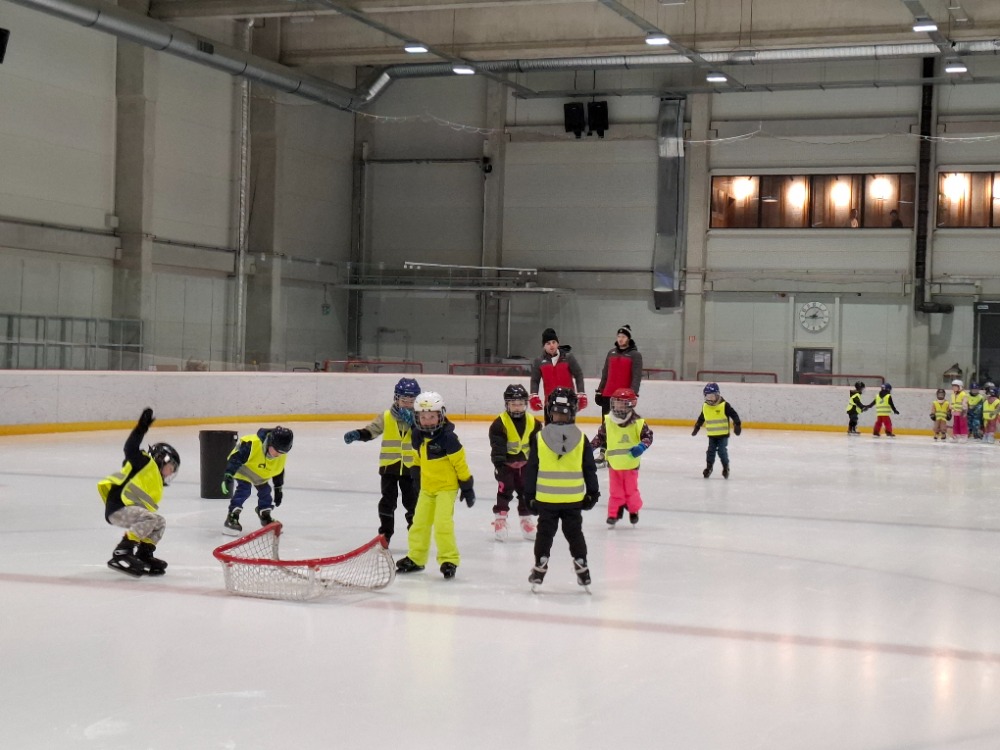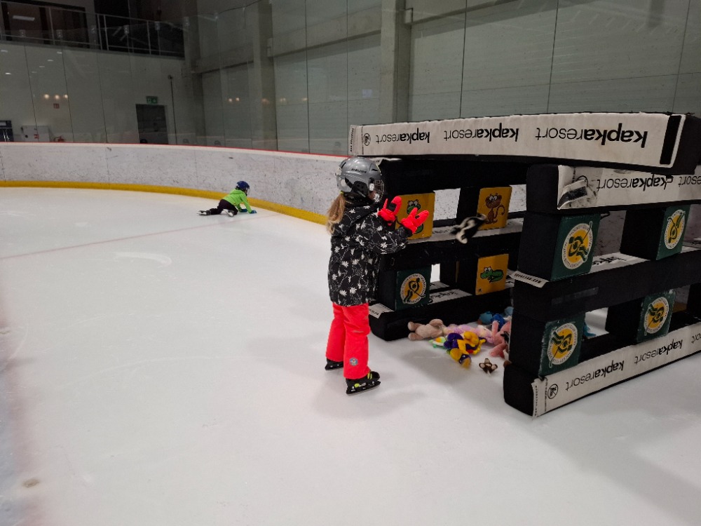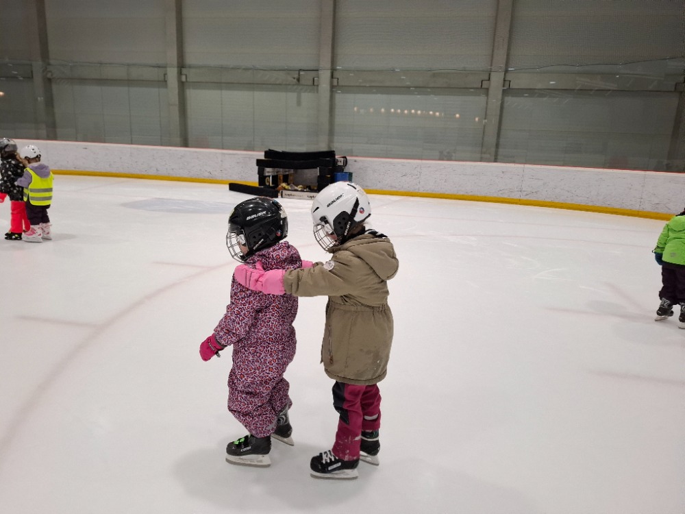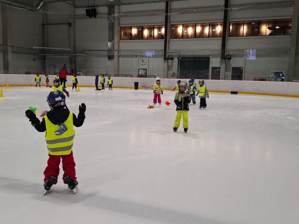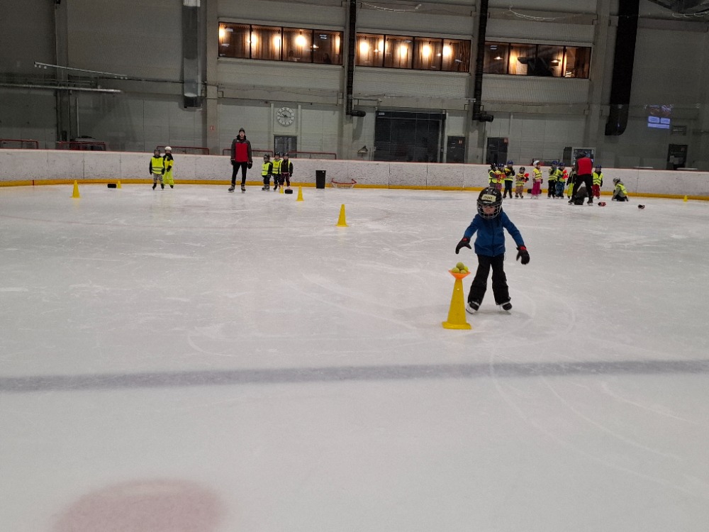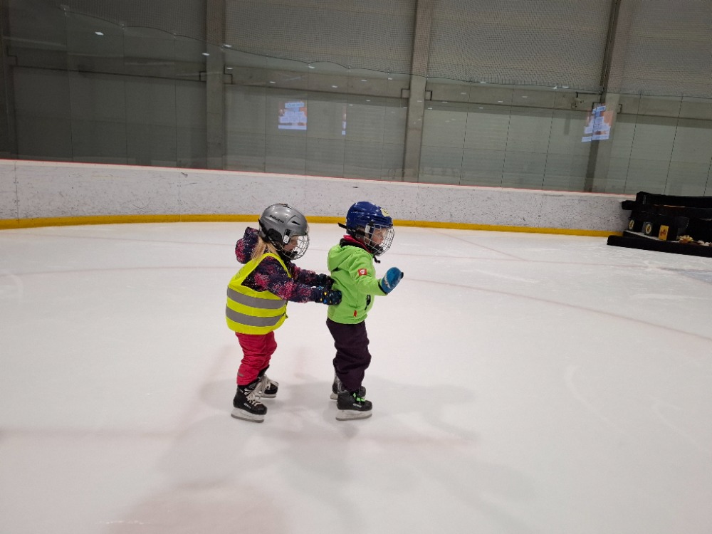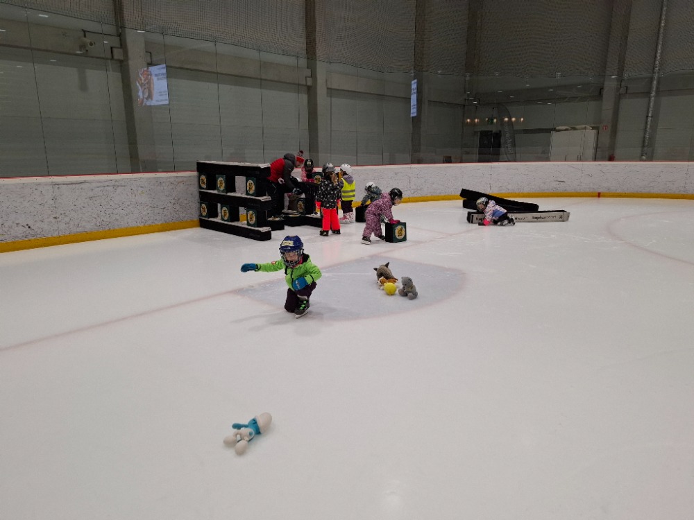 Děti z páté lekce bruslení se na ledě pohybují stále sebevědoměji a jistěji. Některé dnes s radostí stavěly domek pro zvířátka, ve dvojicích si hrály na vláčky, kdy jeden vedl a druhý se s úsměvem nechal vést po ledě, zatímco jiné pilovaly obratnost v slalomu. Velkou výzvou bylo také sbírání míčků za jízdy, které zvládly s velkým nasazením. Všechny děti si zaslouží velkou pochvalu za snahu, odvahu a radost z bruslení.