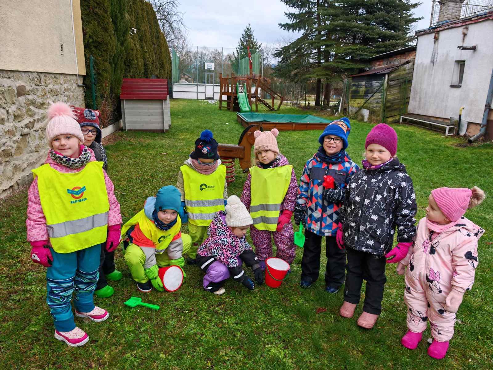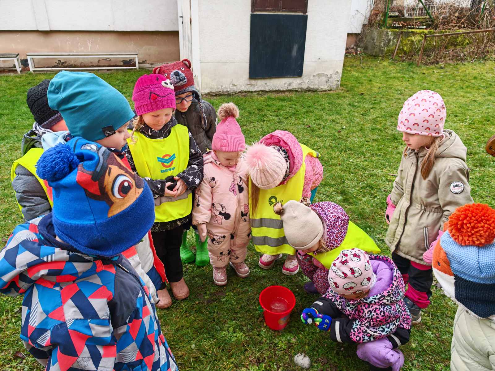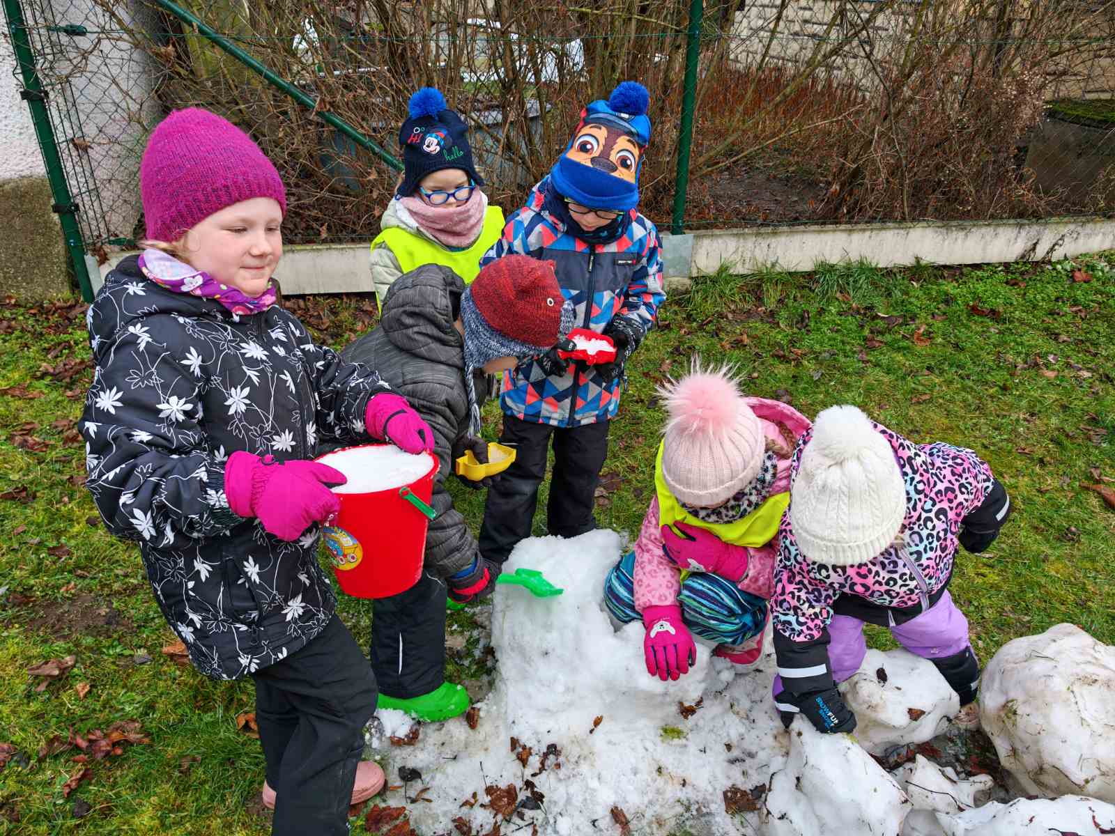 Děti tak mohly pozorovat, že sníh na trávě taje rychleji, zatímco v kyblíku dokáže zůstat déle a mění se postupně – z pevného sněhu na vodu. Pokus ukázal, jak počasí ovlivňuje sníh – a děti byly nadšené, že mohly sledovat proměny na vlastní oči!
