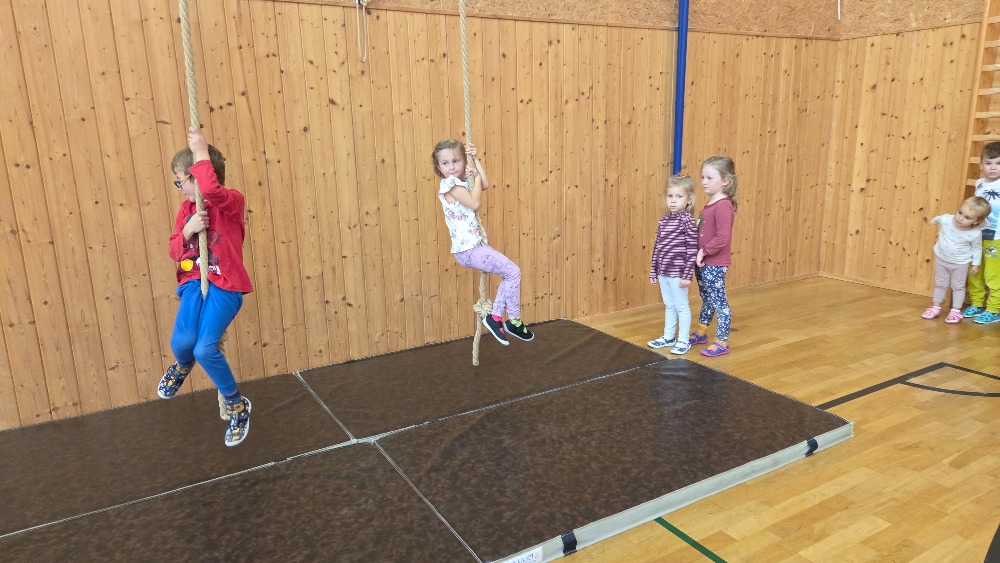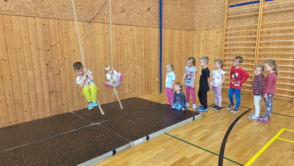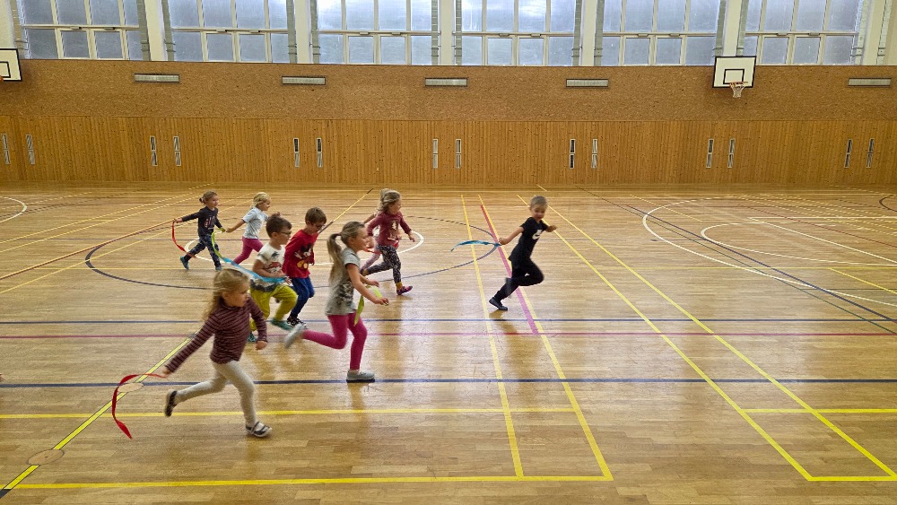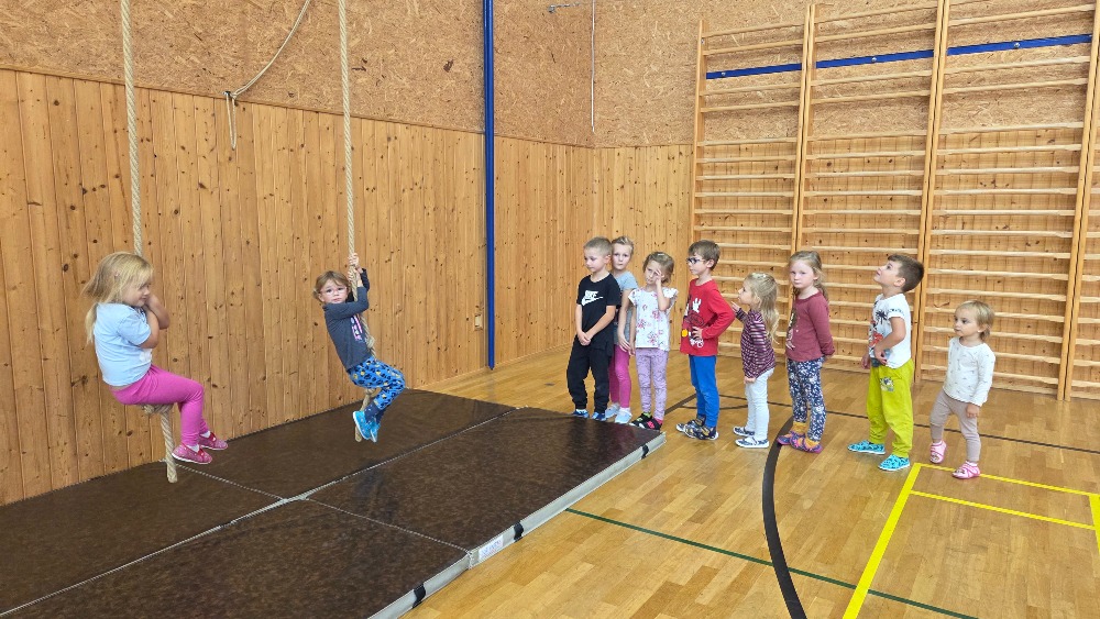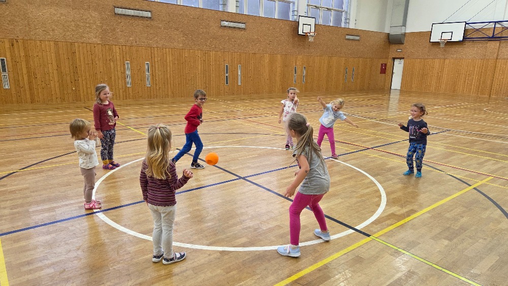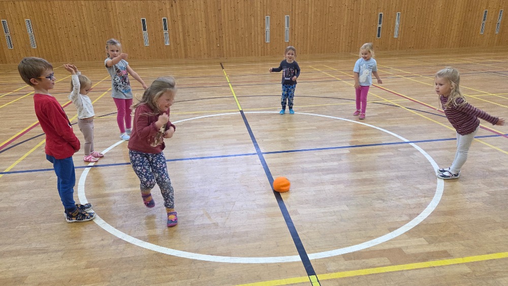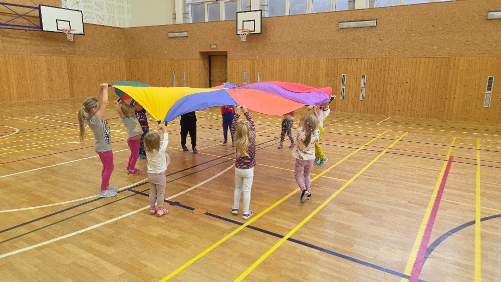 S příchodem podzimního počasí si každé úterý velice rádi chodíme protáhnout naše těla do místní sportovní haly. Zahřátí s hudbou, rozcvička s říkankou, nové cvičení s obručemi a míči, hry s padákem, pohybové hry plné zábavy a smíchu. To je stručný výběr z mnoha dalších aktivit, kterých si v hale naplno užíváme. Jenom je škoda, že vyhrazený čas nám tam vždycky tak rychle uběhne.