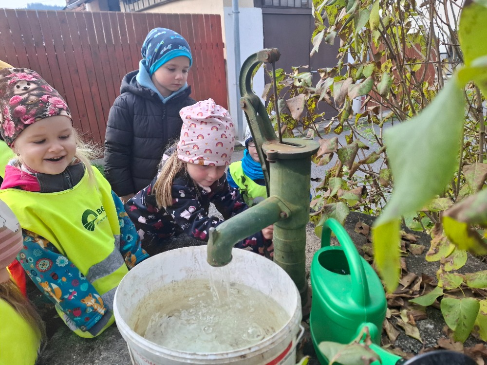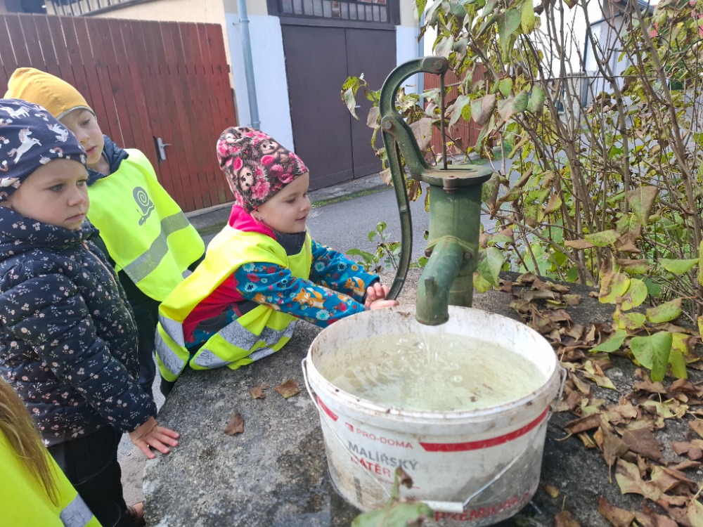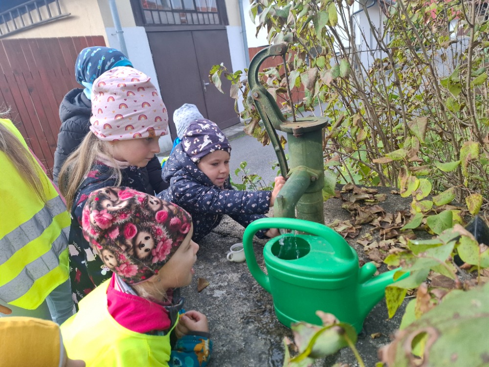 Děti se s nadšením pustily do práce – pomalu a opatrně tahaly mrkve ze země. Bylo to napínavé, protože se každou chvíli objevila nová mrkvička, která byla buď malá a roztomilá, nebo pořádně velká. Jakmile jsme všechny mrkve vytrhali, přešli jsme k dalšímu kroku. Když jsme si všichni umyli ruce, vyrazili jsme ke studni, kde jsme napumpovali čerstvou vodu. Děti si to užívaly, protože voda z pumpy vždycky působí jako kouzlo.