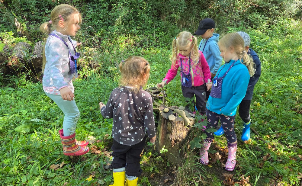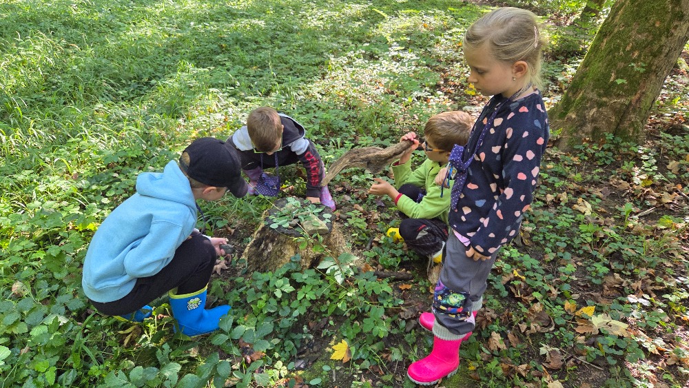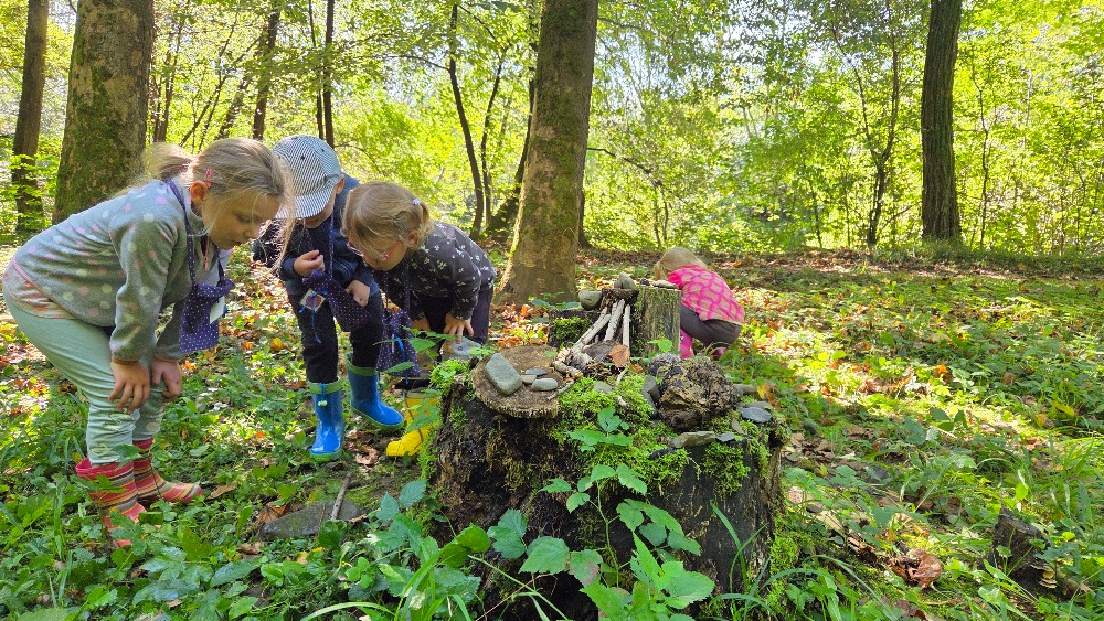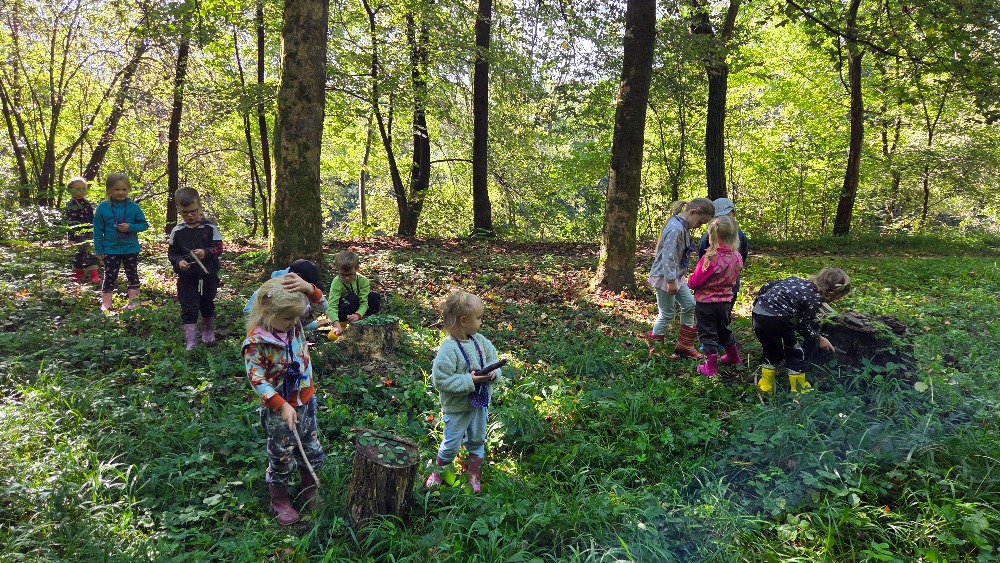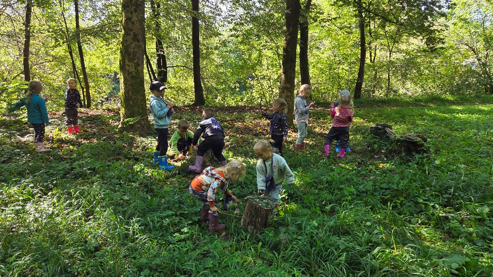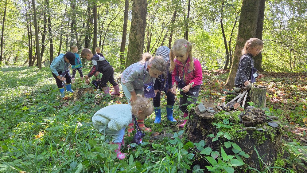 Procházky do lesa patří mezi nejoblíbenější. A stavění domečků nejenom pro skřítky? To nás baví!