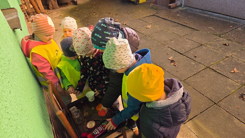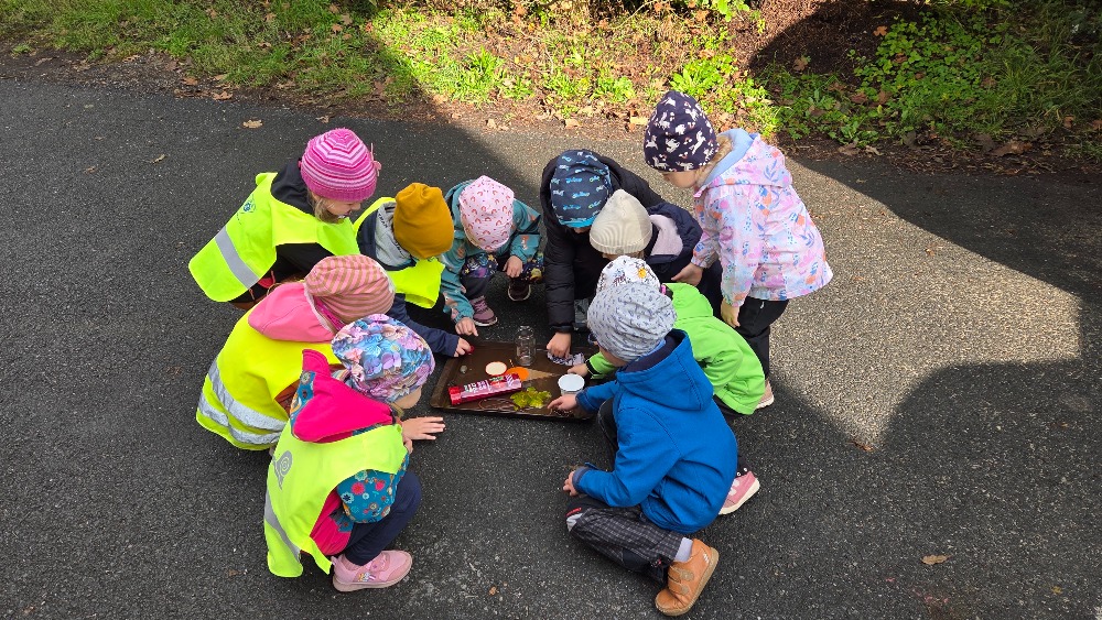 Přesně týden, tj. Od 6.10., viz, fotogalerie, trval náš pokus s příznačným názvem, Co dokáže déšť, vítr a slunce. Tácy se zmoklými věcmi z různých materiálů, byly umístěny v rozlišných podmínkách. Jeden venku, pod stříškou, druhý na parapetu za oknem, uvnitř budovy vytápěné ústředním topením. Oba tácy jsme průběžně kontrolovali a výsledek byl víc než jasný. Podzimní sluníčko a studený vítr nemají takovou sílu, jako teplo uvnitř budovy.