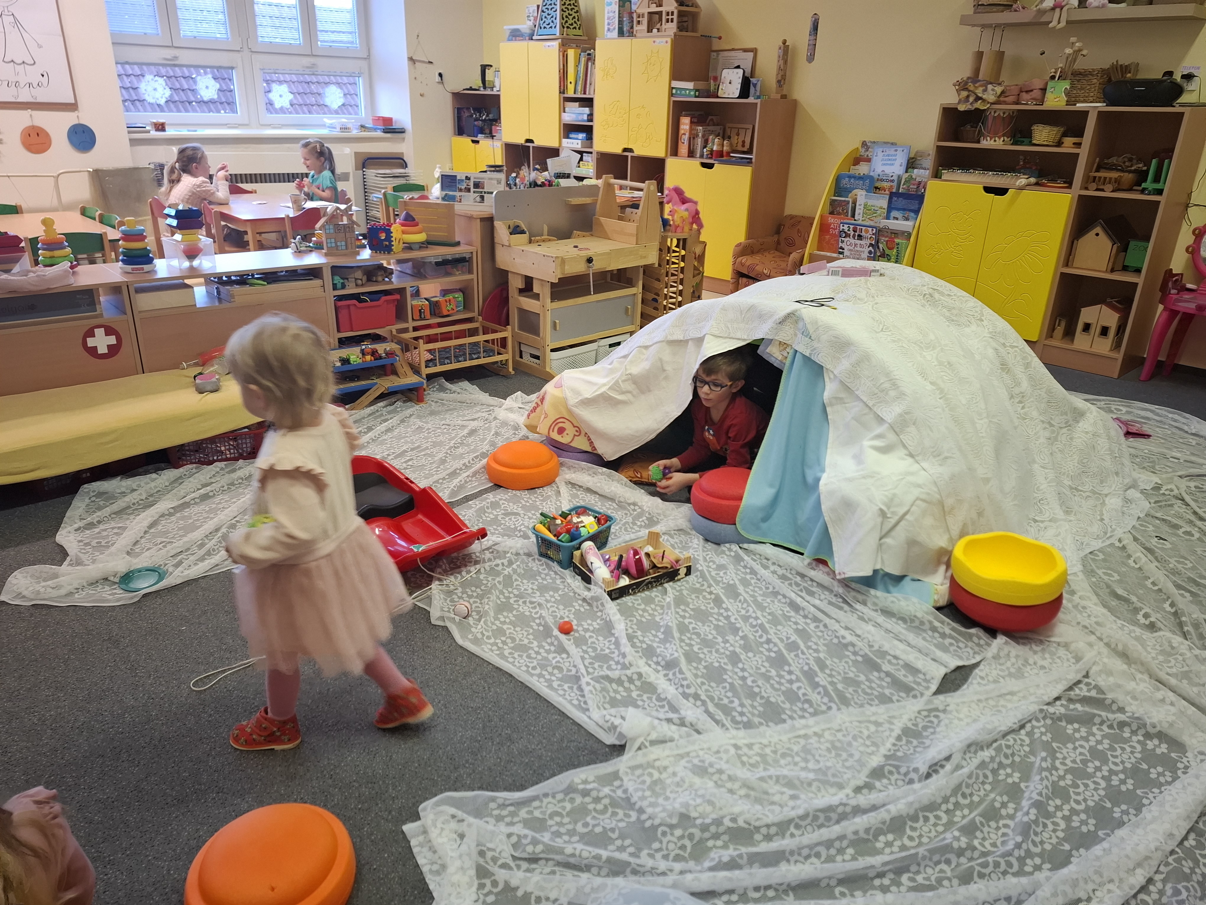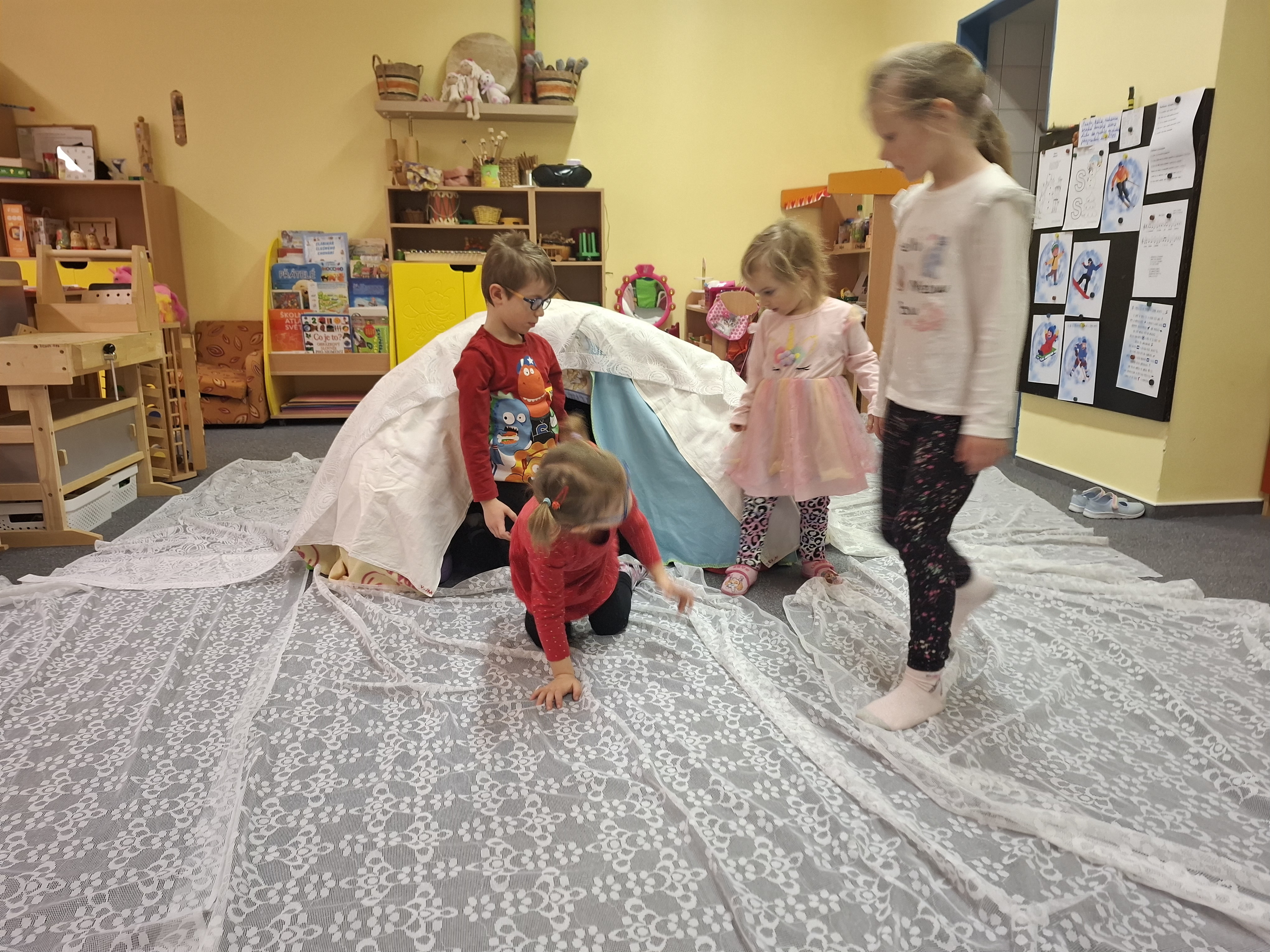 Ukázali jsme si, že zimní hry a zážitky si lze užít i bez hromady sněhu – stačí fantazie a dobrá nálada a chuť si společně hrát.