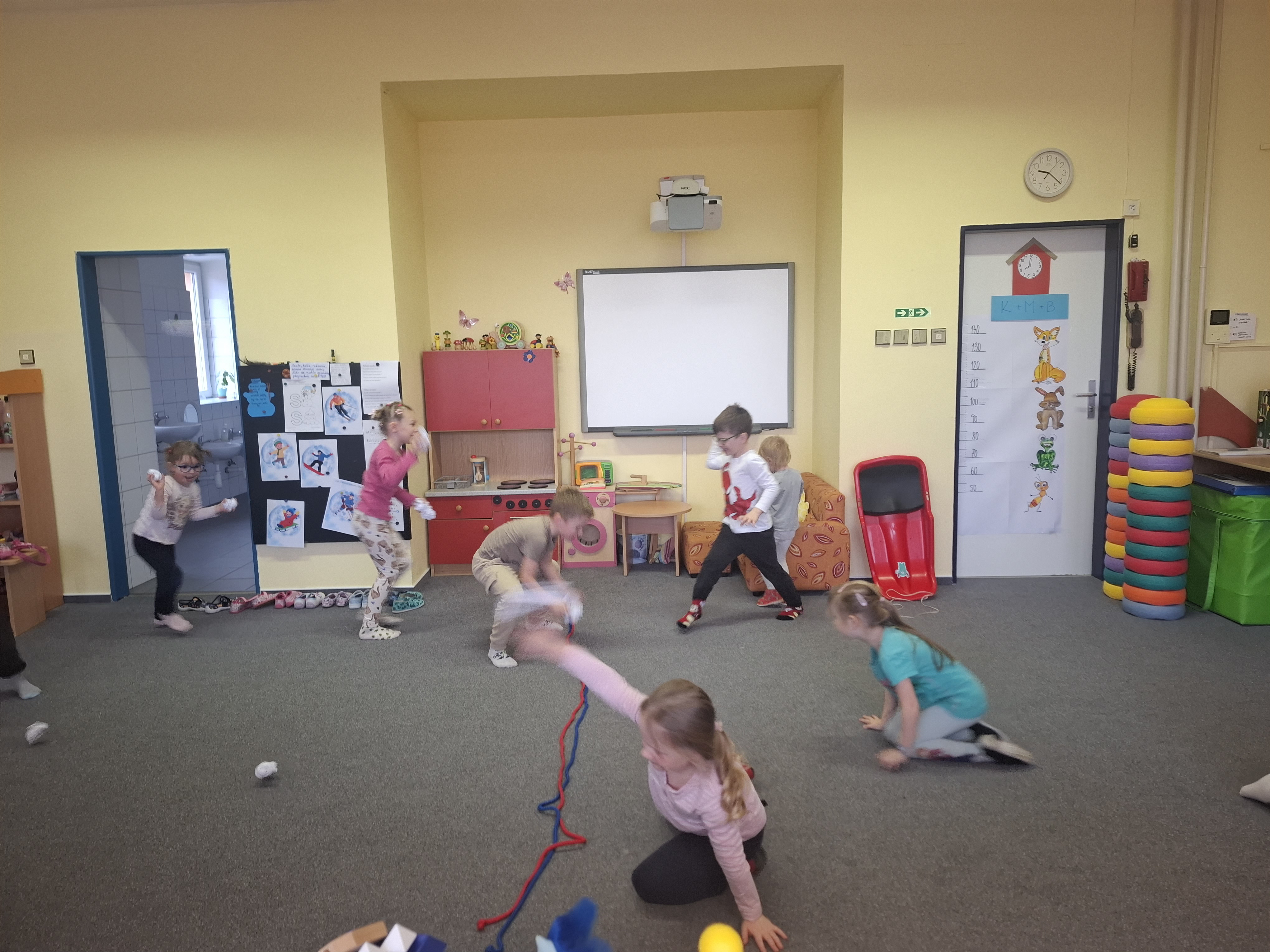 Ukázali jsme si, že zimní hry a zážitky si lze užít i bez hromady sněhu – stačí fantazie a dobrá nálada a chuť si společně hrát.